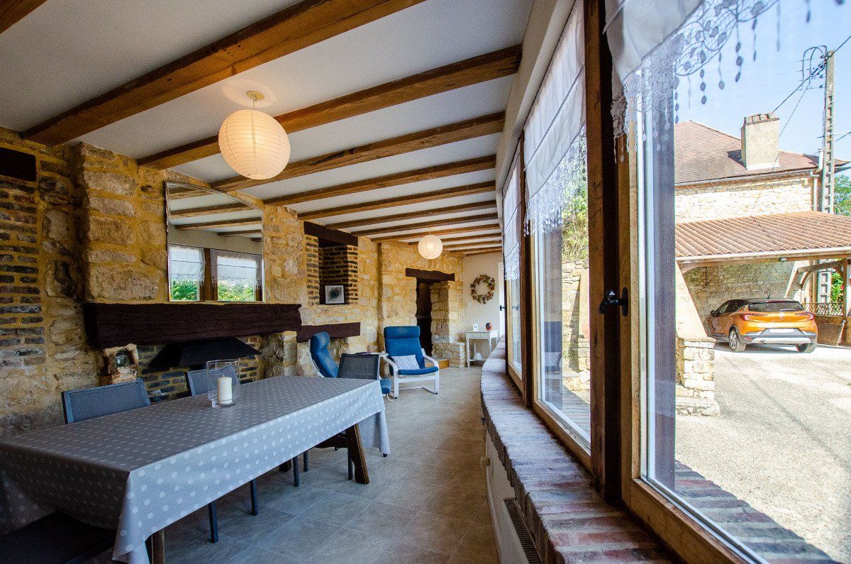 It is built against the rock by its exposed stone wall and the wooden beams add character to the whole.