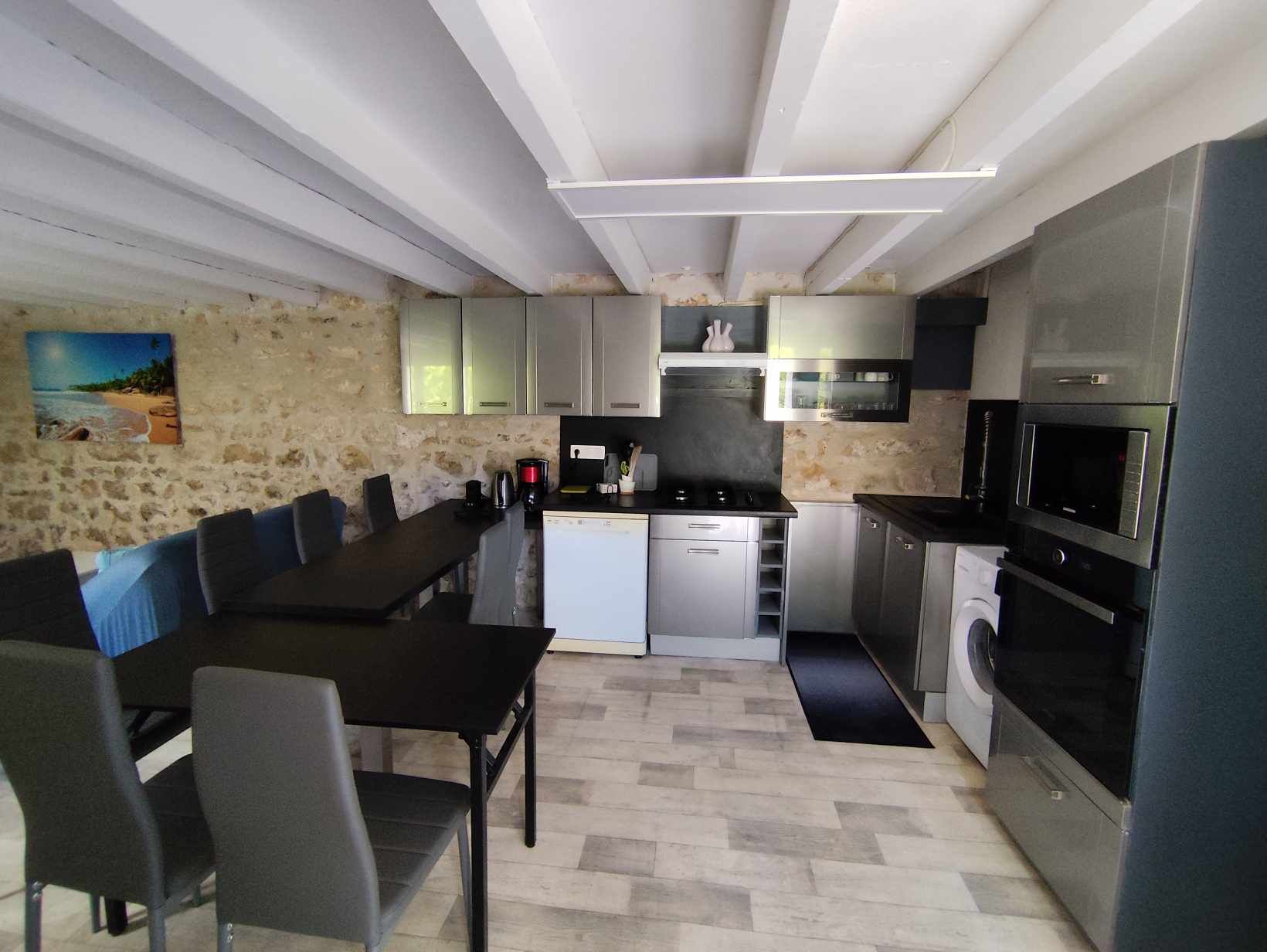 - Sa cuisine ouverte est entièrement équipée (four, micro-ondes, plaque de cuisson, réfrigérateur, congélateur grande capacité, lave-vaisselle, lave-linge), pour vous permettre de préparer de délicieux plats.