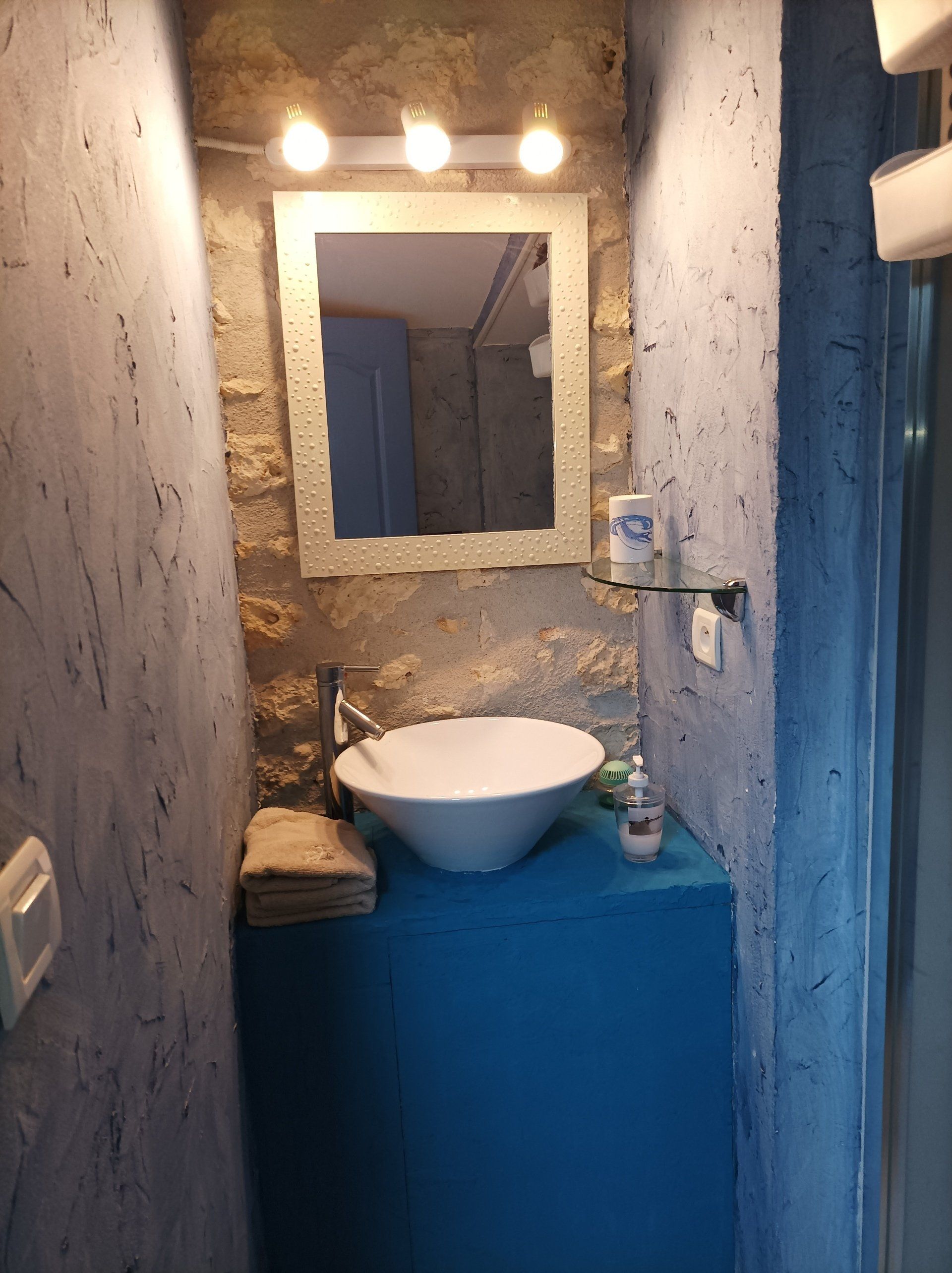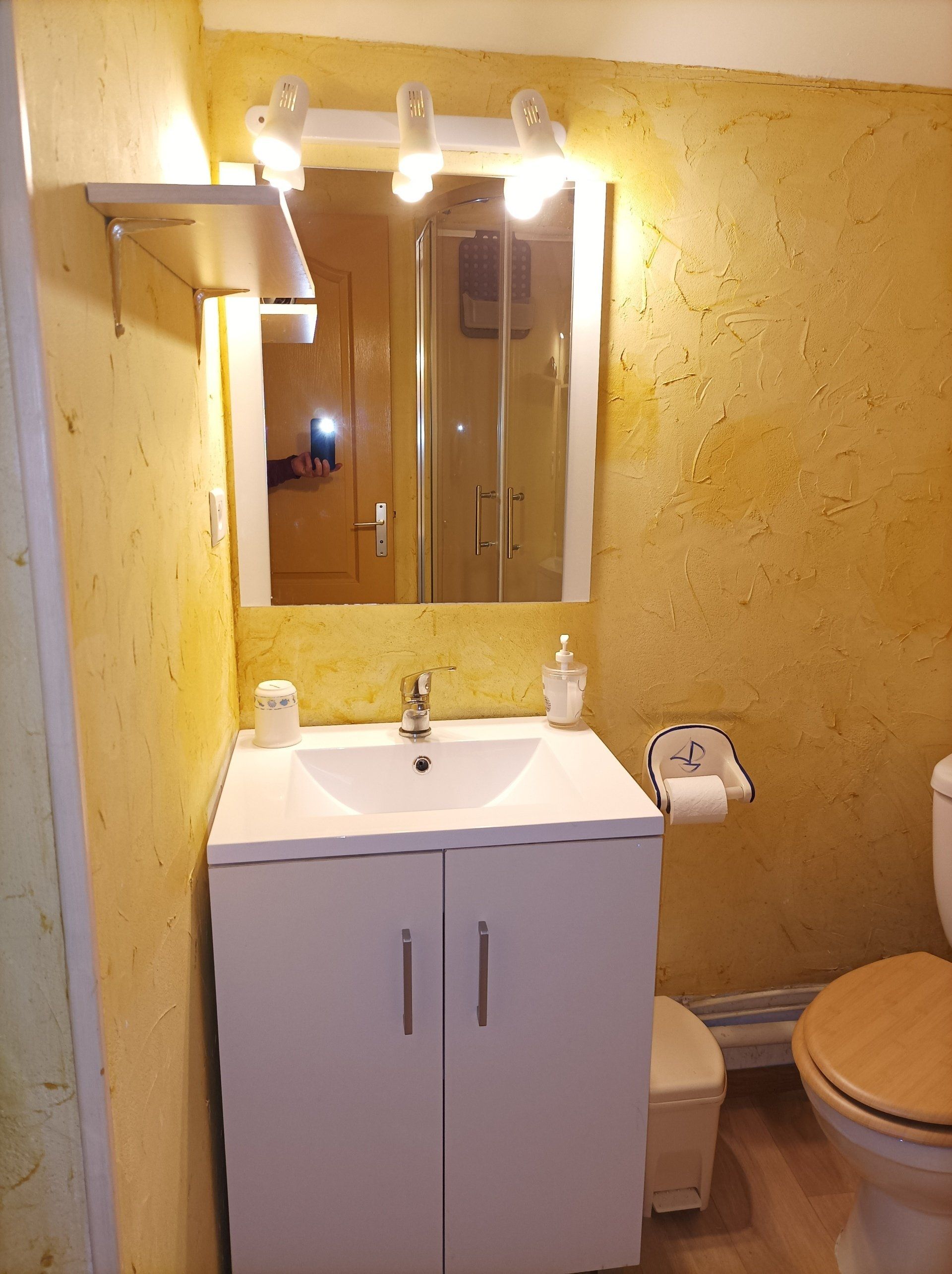 - Salle d'eau avec douche et vasque sur meuble