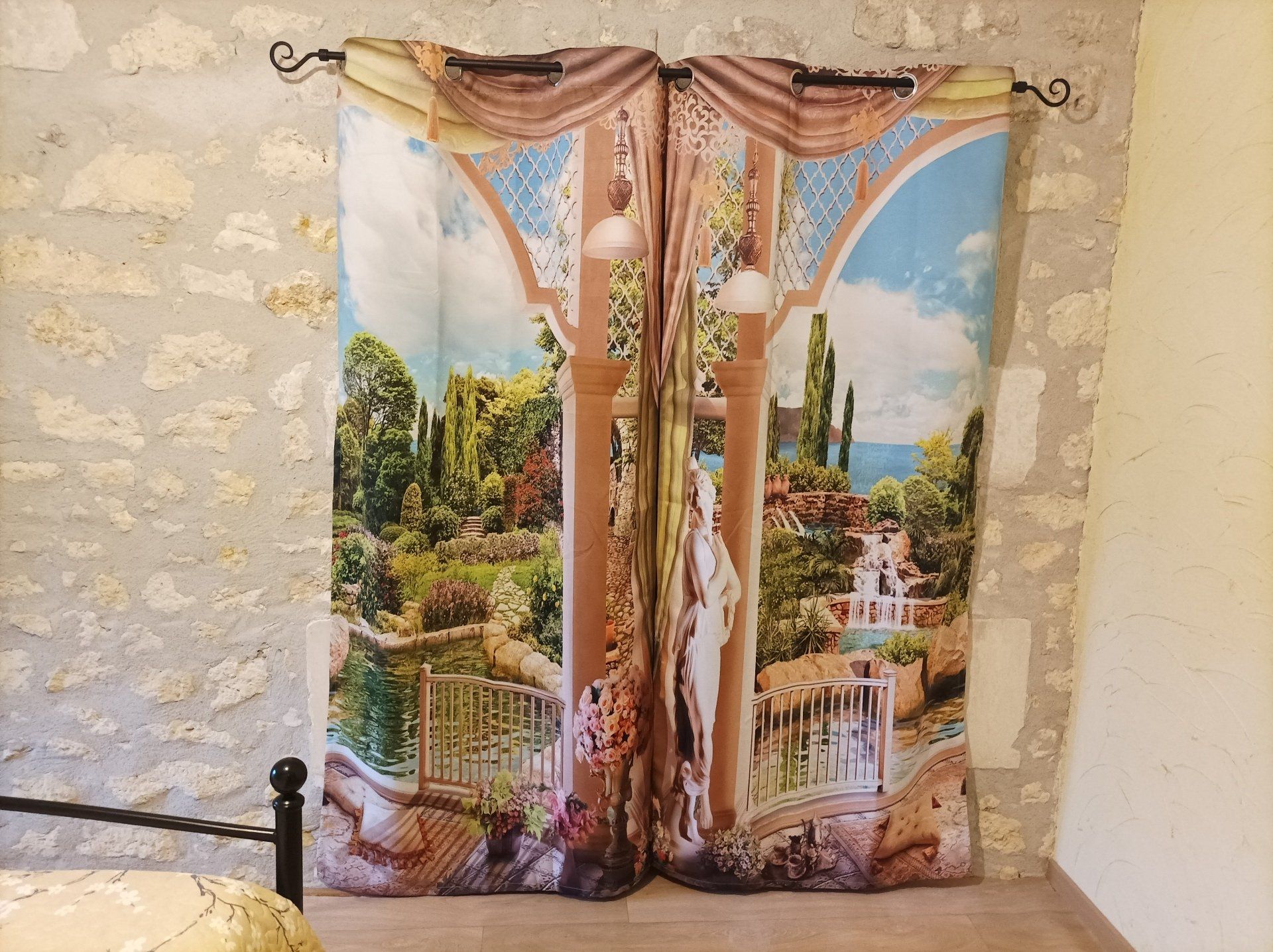 Mur en pierres apparentes dans un décor pastel